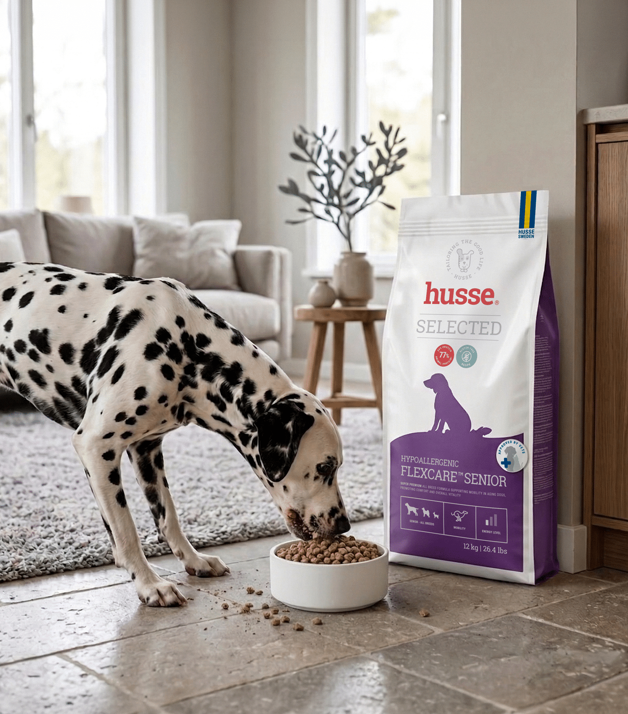 Hypoallergenic Flexcare™ Senior est le choix idéal pour accompagner votre chien âgé pour lui assurer confort, vitalité et sérénité tout au long de ses années senior.